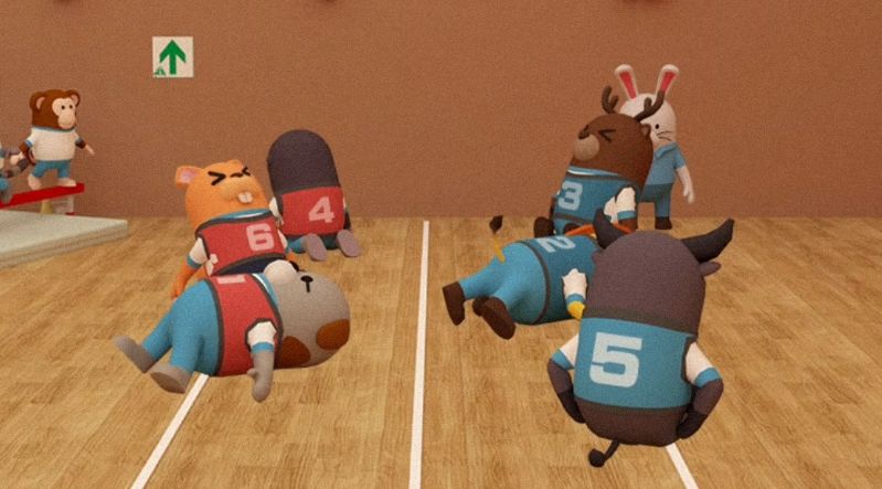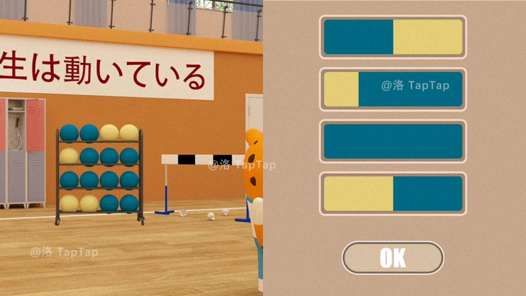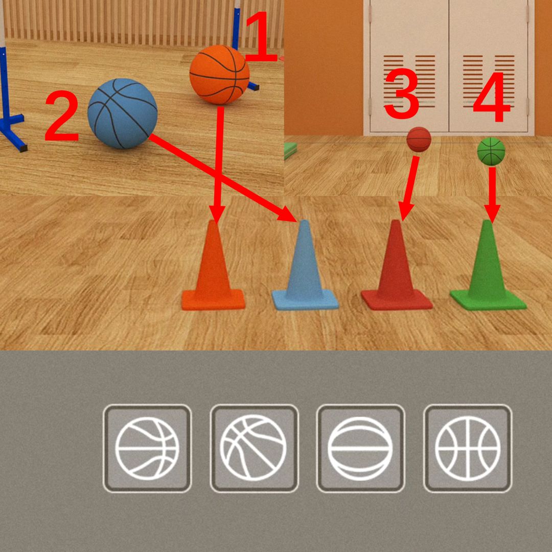 点击排球场后方的跨栏,可以看到另外两种颜色的篮球,记住它们的状态