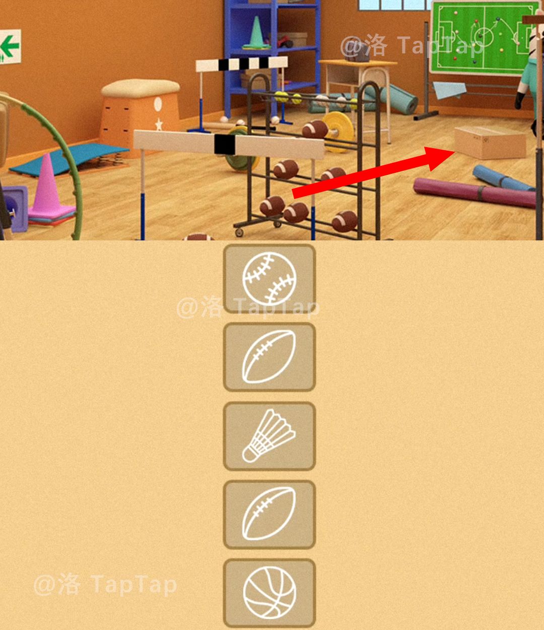 再来到器材室,点击货架从上往下数第一格的盒子