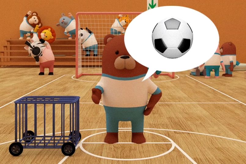 来到足球场,点击熊同学旁边的球箱