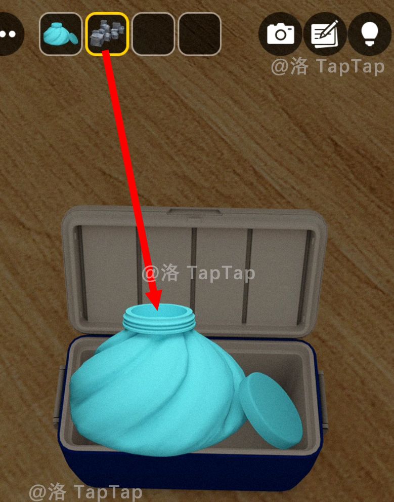 在物品栏中点击【空冰袋】,再点击【冰块】,将【冰块】放入【空冰袋】,得到【装满冰的冰袋】