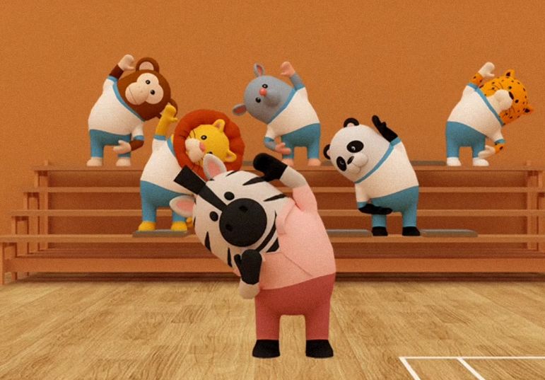 把【哨子】交给斑马老师后,他开心地带领学生们做起了健身操,记下它们的动作,在【任务3】中要用到
