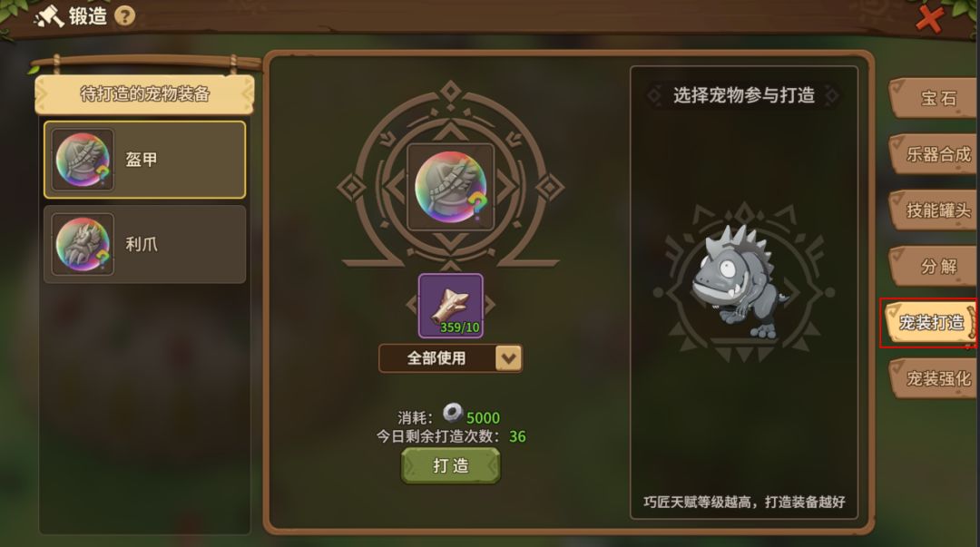 (【锻造】-【宠物打造】界面)