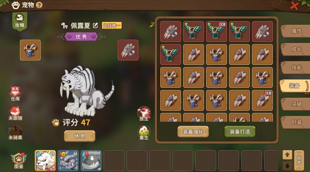 宠物战力提升必备全新功能!即,通过打造宠装使对应宠物战力UP UP!让我们先睹为快相关功能的界面以及具体的【使用说明】吧。