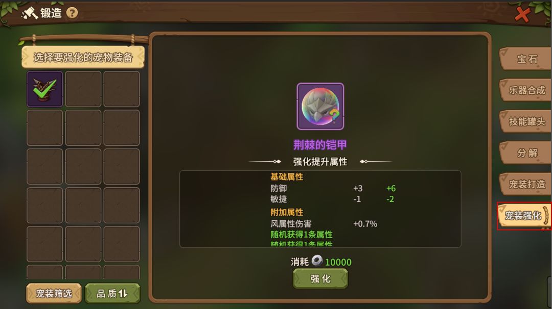 ③ 有一定概率打造出【宠物套装】,可以用于提升宠物的天赋效果。
