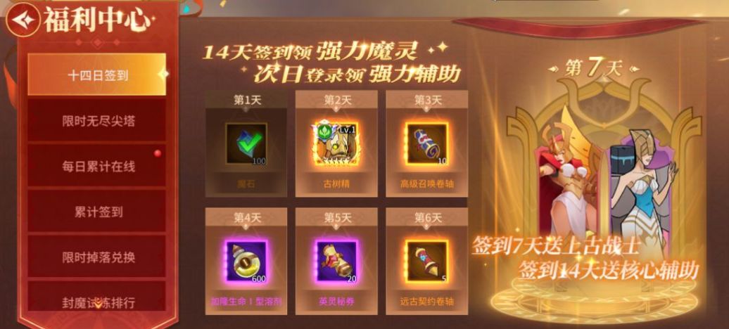 *【签到】页面可以在游戏内点击右上角【十四日签到】按钮或是点击右上角【福利中心】找到,打卡截图内容必须与打卡示范一致*