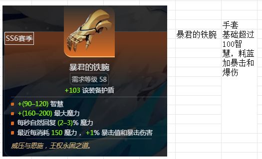 手套:暴君的铁腕 基础100智慧,耗蓝加暴击和爆伤