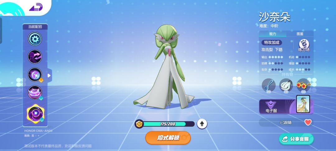 沙奈朵的作战风格偏向于远程技能消耗,或者打连招短时间爆发。