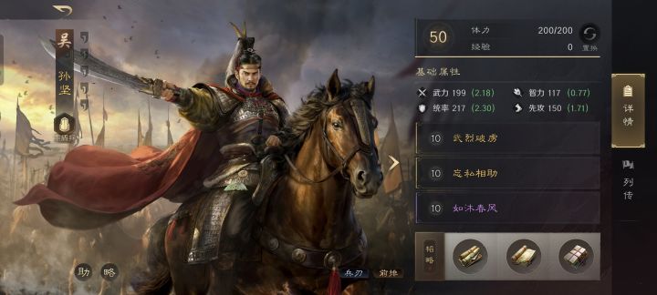 孙权的百战不殆的指挥战法,无难之志是主动战法,如此既要又要的思路,委实是极其少见的。被他这么一整,老爸孙坚武烈破虏的发动率被提升到了62%,震慑效果无疑更稳了。