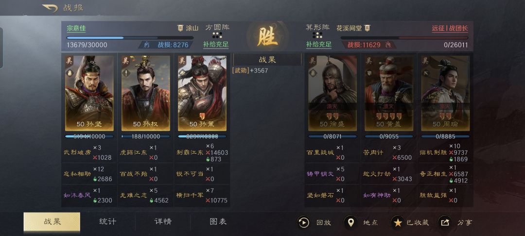 江东之虎孙坚和他的宝贝小儿子孙十万,在此战中联合组成了方圆阵的前排防线。孙坚通过兵书着重加了规避,再凭着震慑和治疗,确实足以胜任合格的肉盾岗位。