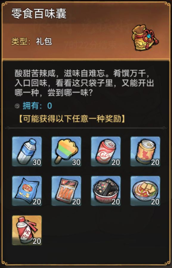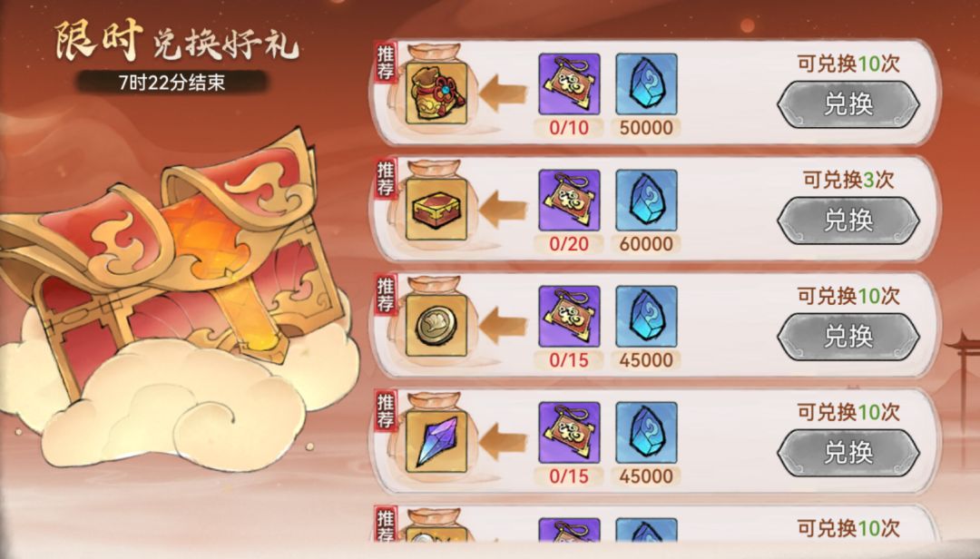 活动期间会开启【限时兑换】,祖师可以消耗福牌和灵石兑换零食百味囊、星尘石英、许愿币等奇珍物品。