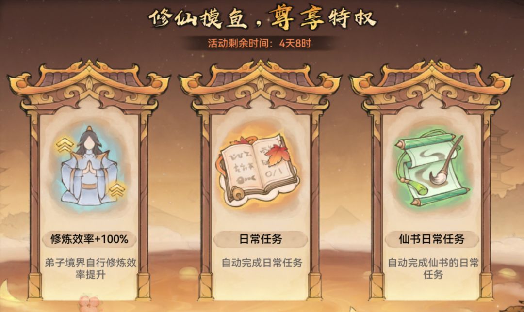 本次活动期间【庆典特权】会照常开启,祖师们一起摸鱼修仙吧~