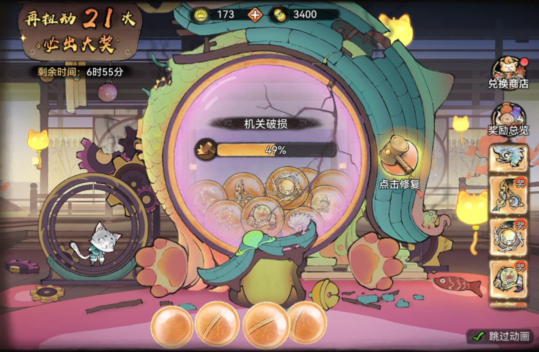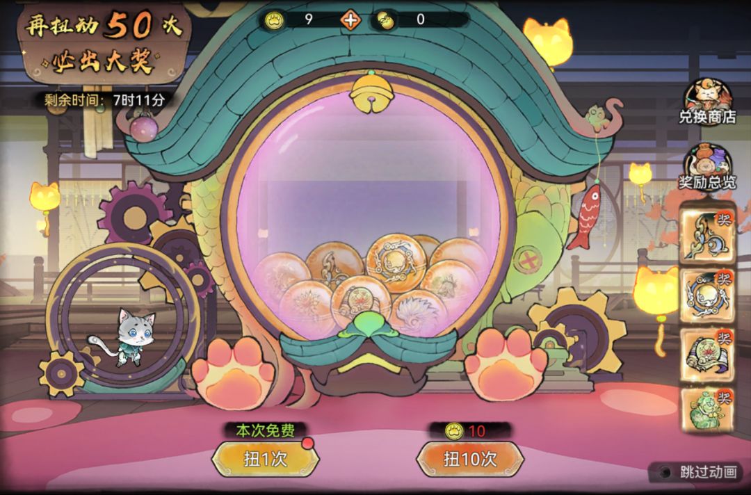 如果这时候祖师能帮喵仙人修复扭蛋机,可以获赠一定数量的扭蛋作为回报哦~