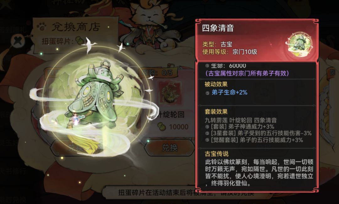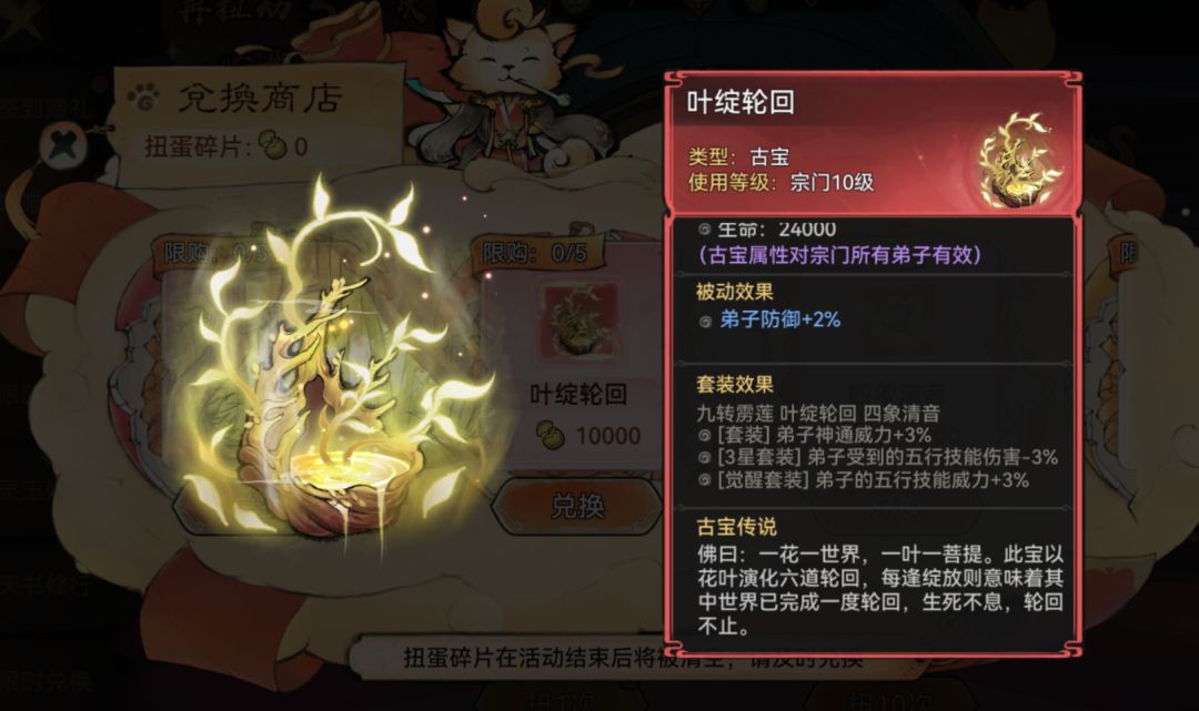 ※扭蛋碎片会在兑换商店关闭时清空,祖师们要记得兑换使用哦。