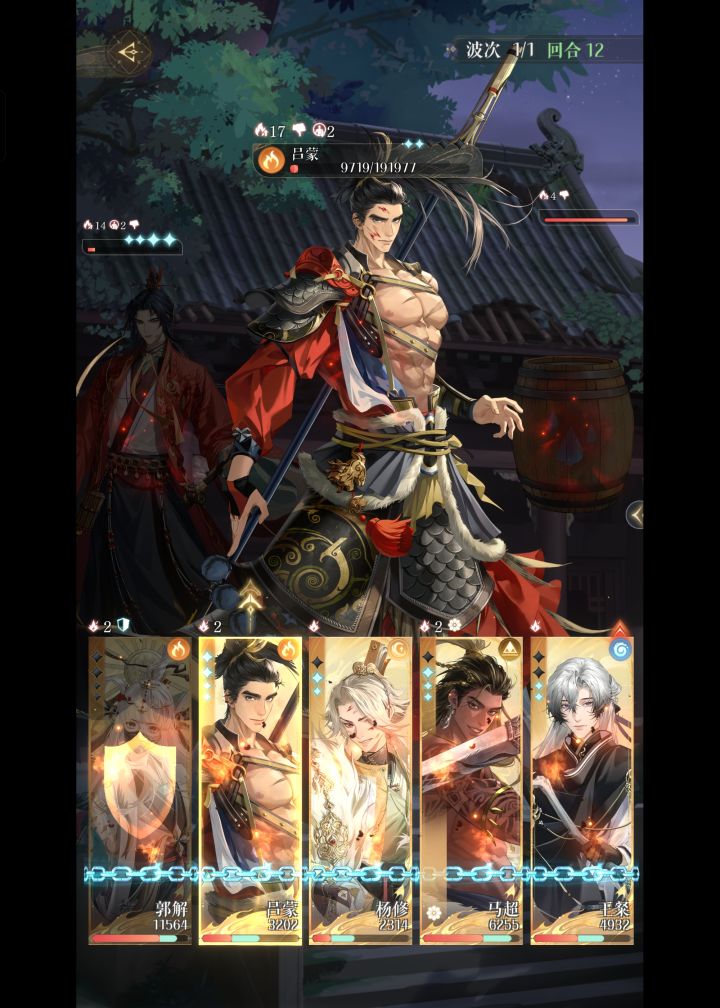 ◇〖狂暴〗陆逊血量是吕蒙血量的一半左右,因为他们其中一个死亡,另一个会狂暴直接秒杀所有人,所以一定要控制陆逊和吕蒙血量。先攻击吕蒙,将吕蒙血压到和陆逊血量差不多,再两个轮流打。