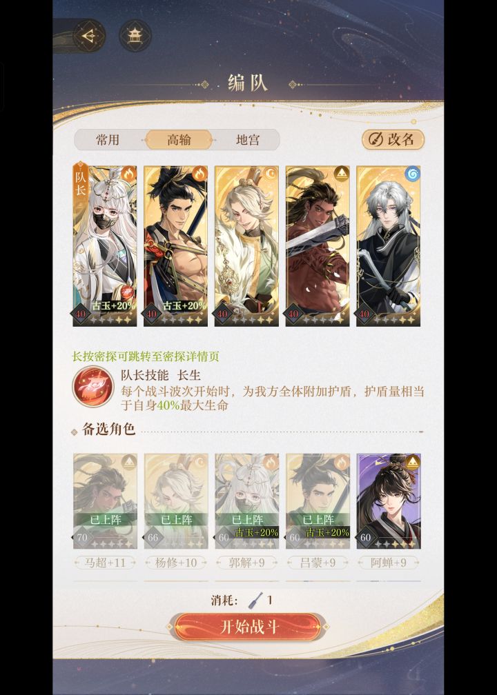◇阵容见图一,练度见图二,王粲+7(星盘:技能能量-1 技能带盾)