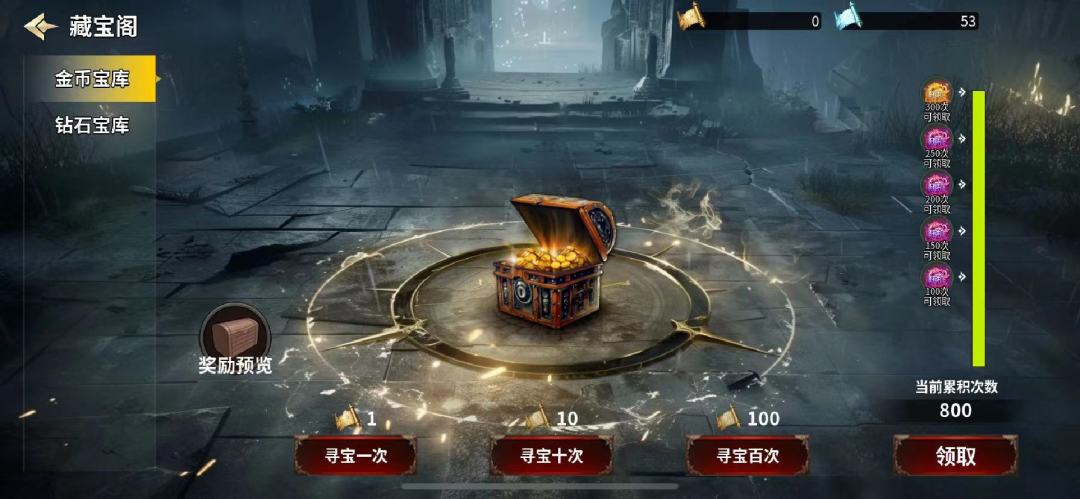 然后去藏宝阁疯狂抽奖,把能抽的全部抽,同时可以加群领取加群礼包,里面也有很多抽奖券和金币钻石