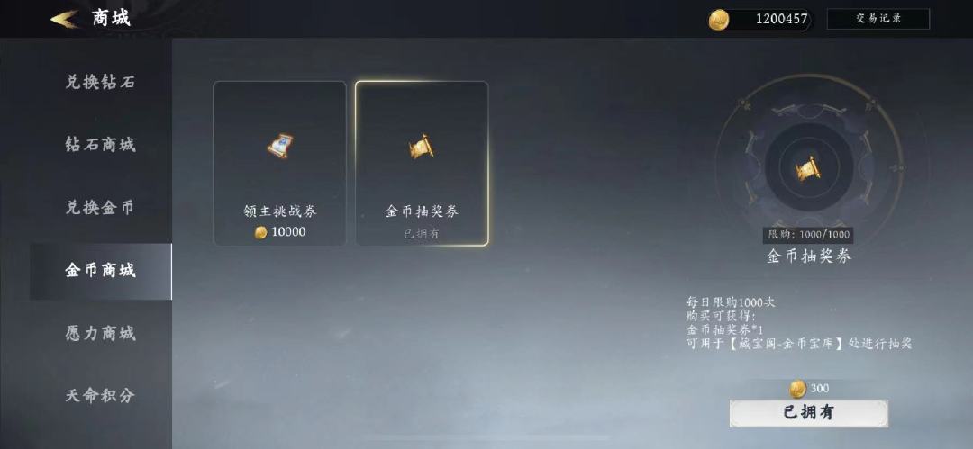 同时金币全部买金币抽奖券,可以买1000张,
