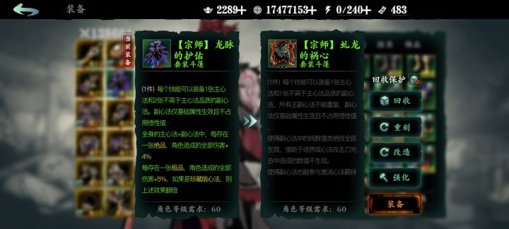 现在基本上开始养心法了,虽然咱们新号目前还是单龙伤害高一些,但是咱们可以做双龙斗篷了。