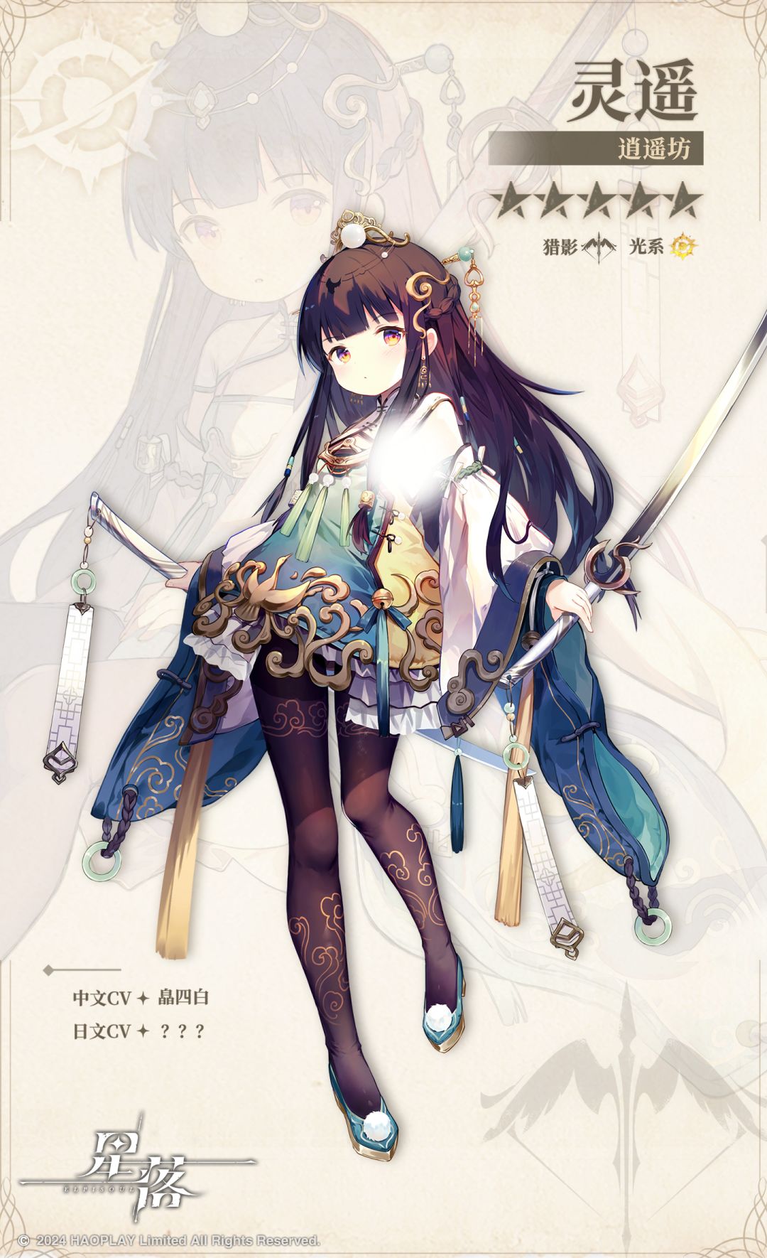 灵遥常年行走于深渊各地,以「逍遥坊」的名义剿灭魔物,捍卫和平。为自身和逍遥坊积攒了不少名望,深受广大探险者信赖。当然,在极为出色的表现之外,本人也保持着少女的天性,对各类新奇热闹的事物好奇。在一些盛大的庆典上时常能看到本人的身影。