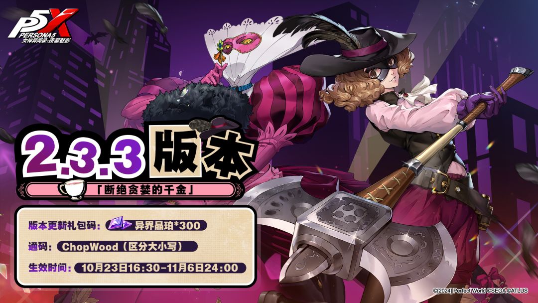 《女神异闻录:夜幕魅影》2.3.3版本「断绝贪婪的千金」更新公告