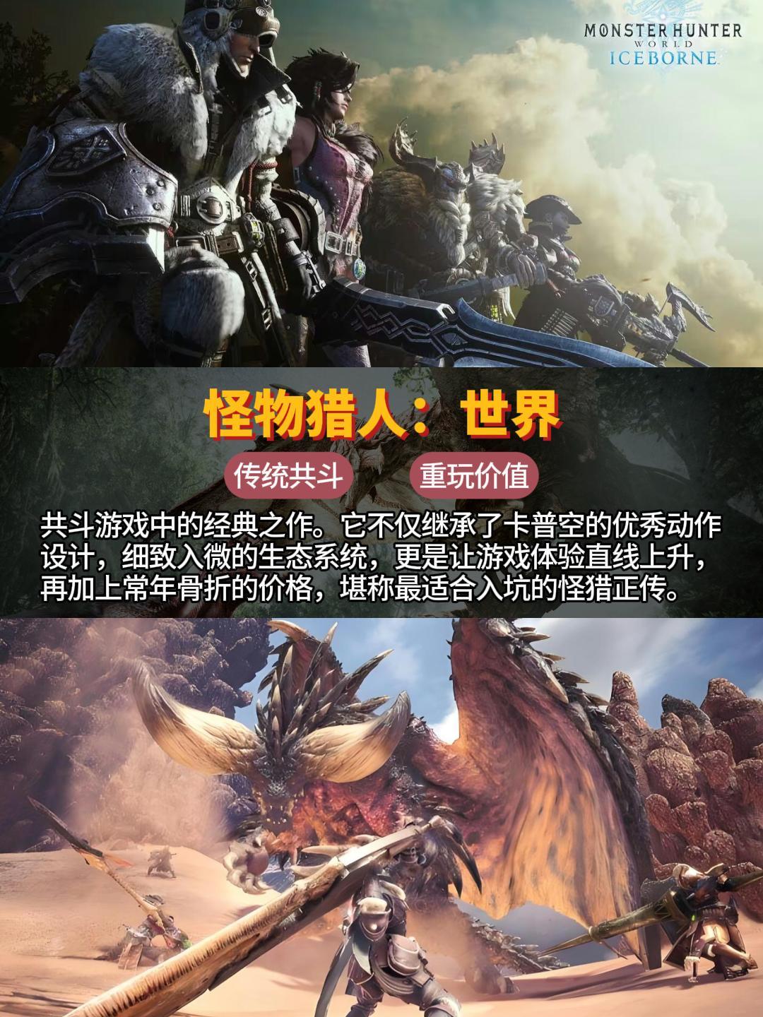 共斗游戏🎮中的经典之作。它不仅继承了卡普空的优秀动作设计💪,细致入微的生态系统🌿,更是让游戏体验直线上升🚀,再加上常年骨折的价格💰,堪称最适合入坑的怪猎正传。🎉