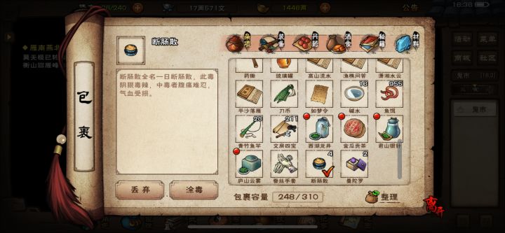 从背包里提炼出来2种毒,说是直接涂毒的,我涂哪啊?我把武器卸下来也没看见(见图二),请大佬们赐教。