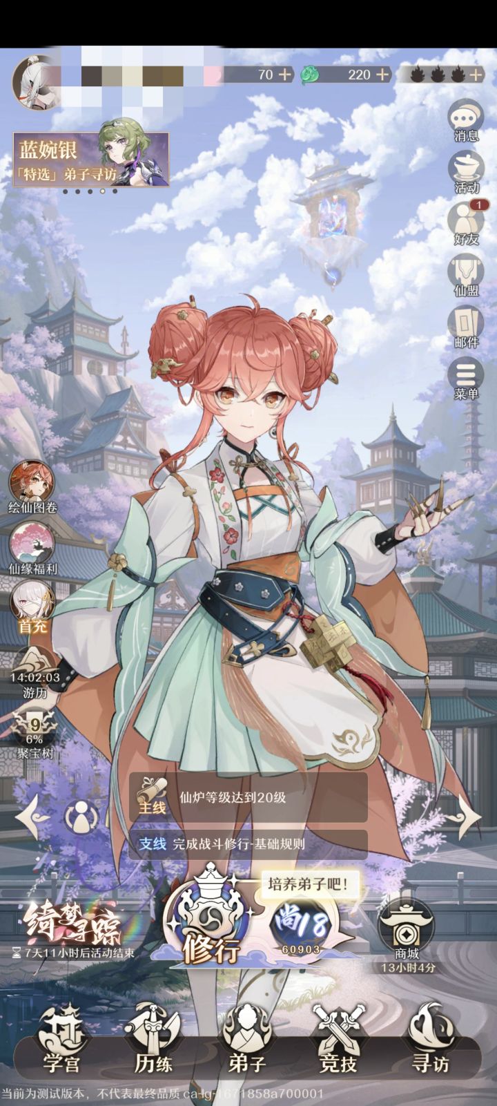 说明:本人属于轻度游玩状态,上一测玩到了39级炉子,肝久了会略微疲乏,这一次测试更适合我,我只充了首充,每一天将本游所有能用仙玉买的体力全部买完,以及所有活动奖励全部领取,记一天结束