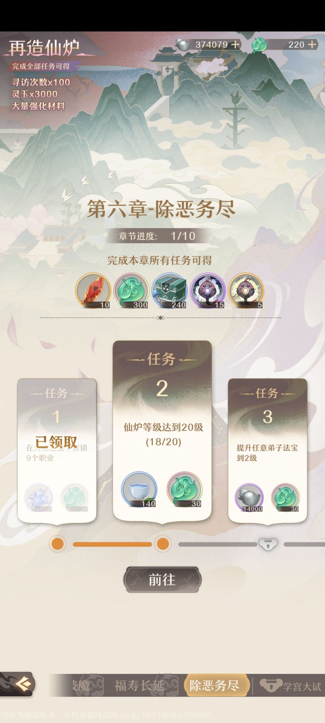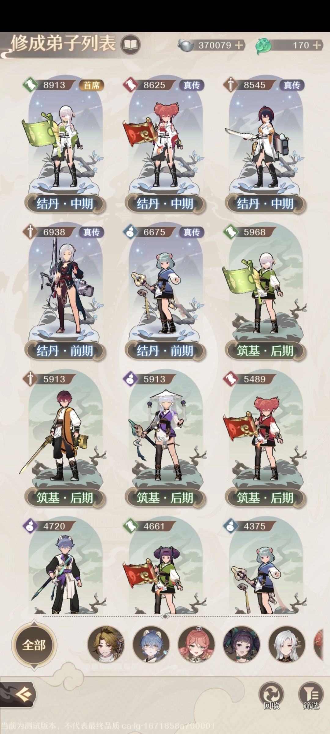 总体而言,这一测第一天游玩还不错,根据主线要求来进行铸仙,推剧情,爬塔,领奖励就行,尤其注意第二张图那两个宝箱不要领取,等主线到了才领取,上一测吃了这个亏,这一测是付费删档,预测这一期一定能有氪金大佬化神,主要值得买的地方,就是体力,多买体力,资源都是附带的,资源投入的话,执念卡>角色,然后执念卡的话,50级够用就行,一定要拉功法,拉5-8个三阶功法差不多够铸仙到元婴中,目前我有一个三阶,结丹后期还差几十,功法是你提升战力的关键,功法好才能铸更高的境界弟子。