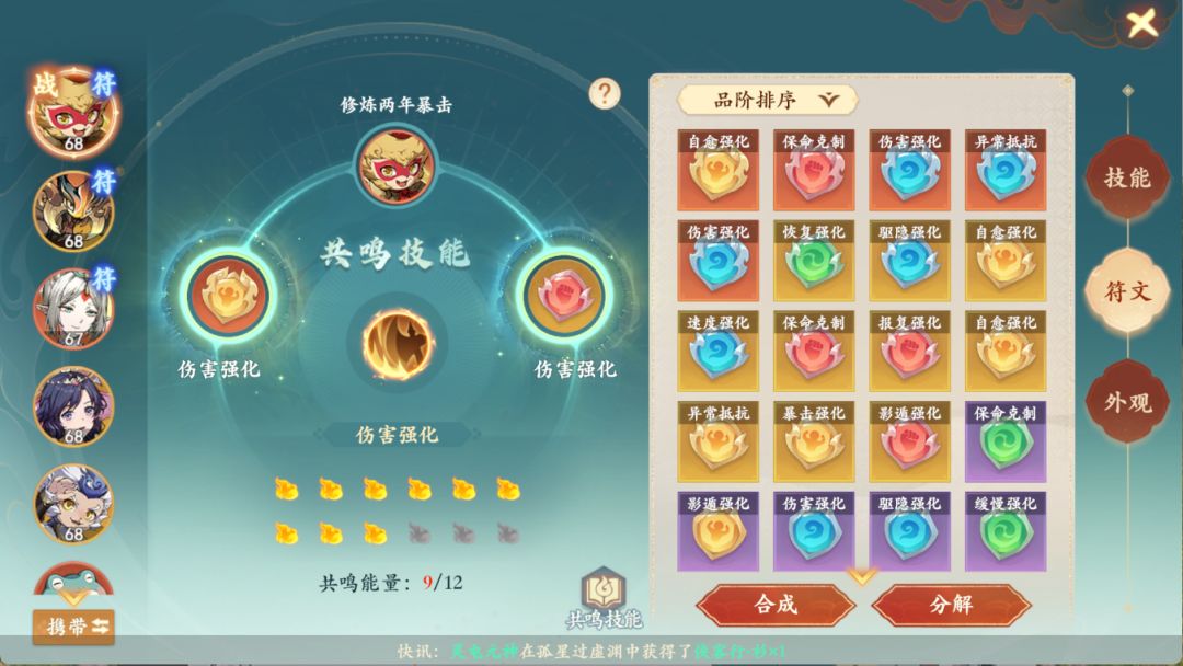 Tips:符文的加成属性对应装配的统御宠物上,单个宠物生效。低级符文可喂养3个同等级升级