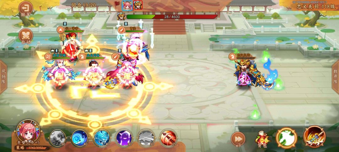 难度不如上一关,除了贾诩速度都不快,文鸯是强力输出,而且免疫,所以要用多段攻击的将带伏羲控稳。