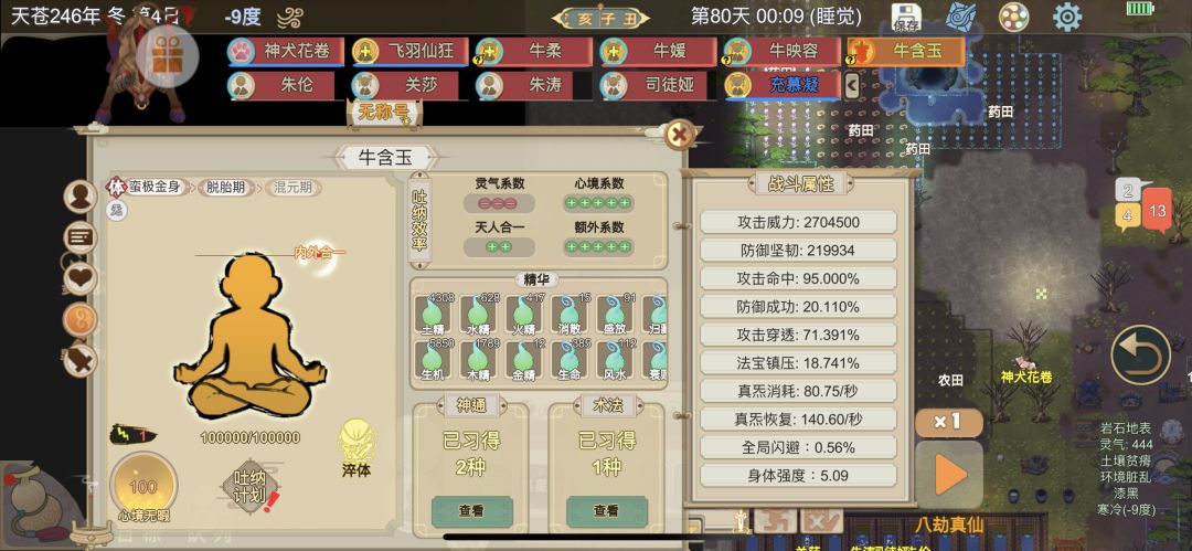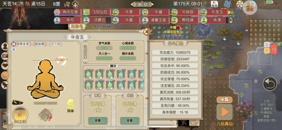 1 开局选择牛妖带队,天劫两百天以上巧匠和岐黄等级高点的牛,过40就行,经历选炼体传承,热心救人,药芦传承,平原,蕴灵树,随机地图就行 2 进游戏后准备给体修建吐纳房,最好弄成吉或大吉,吐纳房里面有聚灵阵,有缅怀盒(要埋人),然后去挖寒晶矿火硐矿做寒晶砂火硐砂,准备好后进内门吃6个赤参6个紫芝,可以直接把筑基值加满并且补充精元,银杏果药草清心草火铜砂这种药物类东西准备多点,点体修吞噬左边可以看到分类,这些药物加起来三百个左右够用 3 进内门后吃一百药物类东西,如银杏果,药草,火硐砂等等,吐纳全取消,用生机精华盯着头部皮毛淬,不要什么都淬,就淬这一个部位,用无极炼体,词条只选百炼,一直淬这个部位,记得修为满了第一时间突破(淬体→洗髓→脱胎),到脱胎期就停,别继续突破了,以后修为满了也别突破 4 脱胎期后用生命本源淬肠胃口肝这四个百炼(先淬肠胃的,再淬口肝)这是加吞噬物品得到的精华数量的(这四种器官淬完就可以开始吃💩了,至少攒30个污秽精华就行,这个不急)然后淬心和脊的百炼(加词条上限),最后是鼻喉肺三个器官的百炼,加吐纳效率,非常重要。生命本源不够就吃药物类物品,淬这些器官的时候会出现先天返照这个词条,有就点,也有极小概率出空化之力,太阳之息,潜默冥息也是有就点,没有这些也不急,主要目标是百炼,除了我说的这些,其他任何词条全不要,至于原祖化你随便,有没有不重要,不点难受那就点 5 上面几种器官百炼100满后开始吐纳,把吐纳点满,一直到太阳精华有两百个后用太阳精华把所有15个器官全部淬上太阳之息,(脑到喉,心到肠,我们练的牛有18个器官)用八极炼体全部点一遍先,取消持续淬炼。一次性淬满太阳之息的暂时不用管了,差一个两个的用无极炼体,差三个四个的继续八极,持续淬炼不要点开记得全部取消持续淬炼,词条优先级是太阳之息,空化之力,潜默冥息,先天返照,其他词条不要,太阳之息要全满 6 十八个器官的太阳之息满后继续给这十八个器官淬潜默冥息,满了的不管,没满的用消散之息淬满,注意端游这个精华叫死灵之息,都是在有尸体的坟墓(缅怀盒)旁吐纳出的精华,吐纳效率除了那几个器官有加成,体修的心境和聚灵阵的灵气也有关系