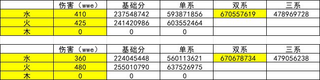 而一定想打两系的选手,这下面是给的部分伤害分数参考图: