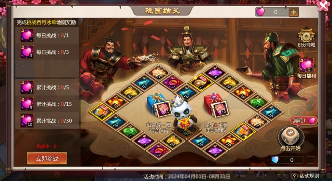 ①每日登录、完成指定地图任务都可获得情谊桃心,消耗情谊桃心可随机前进1-6步,获得对应位置奖励;