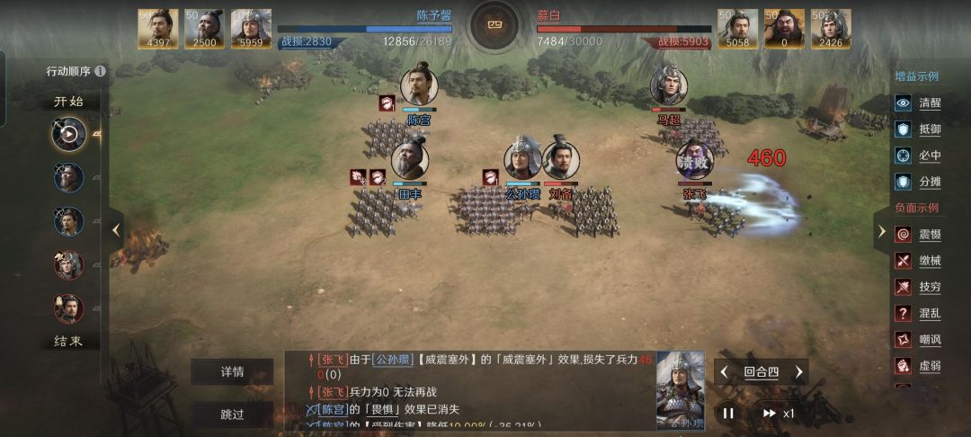 在此特别鸣谢游戏ID名为“陈予馨”的玩家朋友,给本文提供了宝贵的创作素材。他利用麾下的陈宫、田丰和公孙瓒摆出方圆阵,才半场的时间,就把张飞和马超的盒饭安排到位了。当中暗藏了哪些玄机,使得公孙瓒能以这么迅捷的方式一鼓作气带走两位顶级猛将,他全场的伤害量甚至突破了30000大关,答案就在下文的段落里。