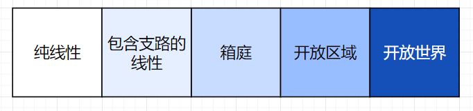 - 一个纯线性叙事关卡,关卡设计的意义是作为对话、剧情、事件发生的场景,让玩家能够尽可能沉浸故事和世界观中。这类关卡尽可能不打断玩家对叙事的关心,不会出现“目标是救塞尔达公主但是林克在四处游山玩水”的场面。