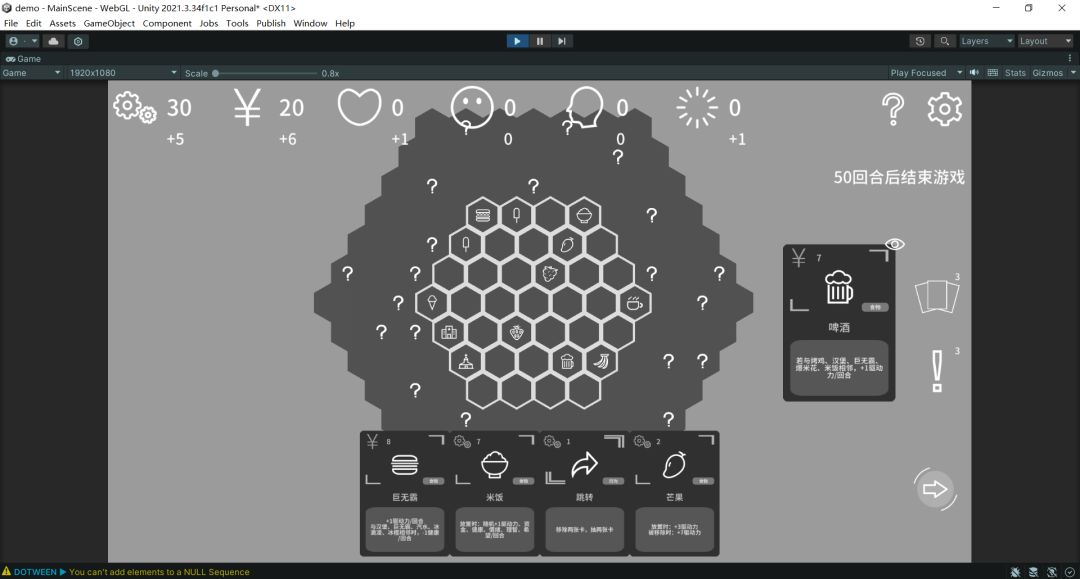 游戏结合了文明6的区域相邻系统和卡牌玩法