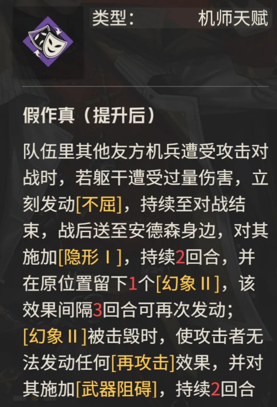 那么目前来看,安德森最大的三个特点,也即是集中于他的三个核心技能/天赋上的功能,基本上就能大幅的囊括他在未来的PVE和PVP战斗中的绝大部分潜力了,接着我们先来说特点一,源自于安德森天赋中的保队友不死效果。这个效果不管是在PVE还是PVP都有不小的潜力,例如PVE中可以实现打完一波后,在敌方攻击回合还能躯干不屈的战术效果,且由于单场战斗内可以多次触发,所以这个保队友不屈的战术意义在未来合适的副本中可能会尤其的夸张,甚至就这样说,如果官方出一个boss每3回合会极致爆发1次的副本,那么安德森的这个保命效果就会有极高的战术价值。当然除了PVE副本外,PVP中配合侧翼突击手的强攻实现不死后,下个回合再来一波强攻收割的战术也不在话下,目前测试下例如奥菲利亚、马库斯等角色在配合这个效果时都能有更为大胆的操作,所以即使安德森未来不能成为PVP中必抢的奶妈,其战术端的意义也不会过低。