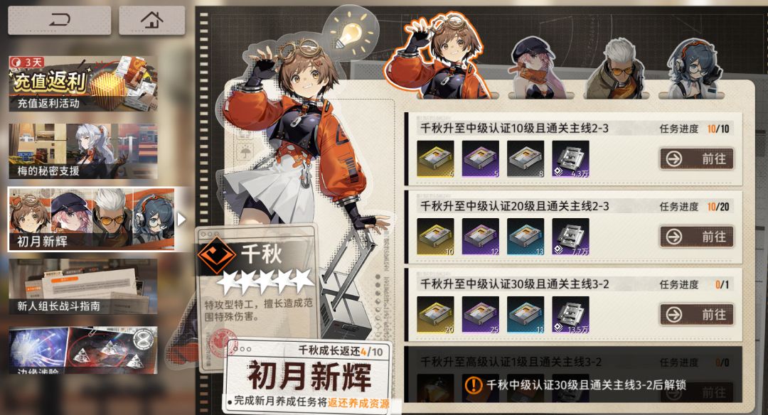 还有开局送的五星角色千秋,和4星角色鸣霜都是前期很好用的角色。