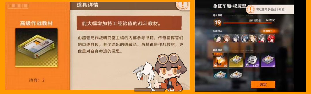前期多刷象征车厢和分析车厢是个基础条件,忽略这里就容易导致阵容角色升级速度过慢,如果单纯依靠主线章节当中的经验来练级,很明显是不现实的。