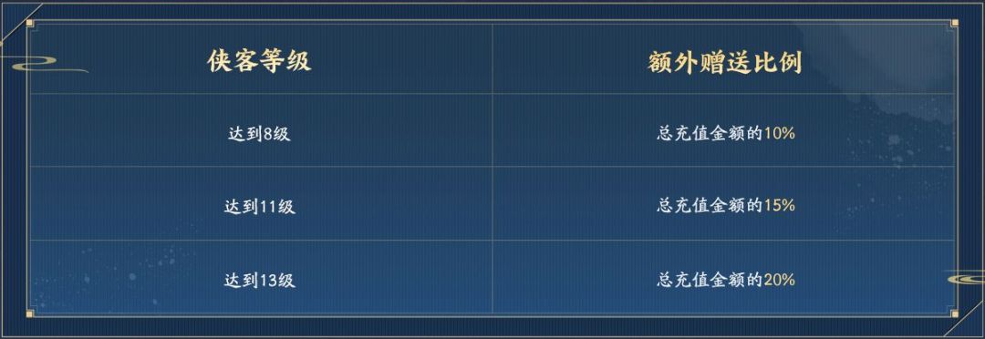 规则2:侠客等级额外赠送