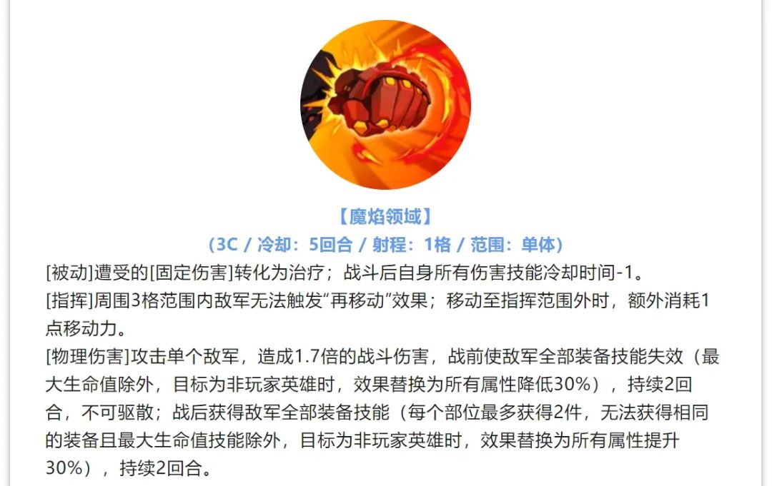 - 之后是最核心的狂怒状态,周围3格有部队死亡时就可以触发,杀人或者卖队友都可以,盲猜召唤物死亡也可以触发。狂怒状态可以无限复活和自动攻击,还会强化炎龙破灭者的专有技能:护卫变成3格,血怒变成突进技能,大招立即起跳。