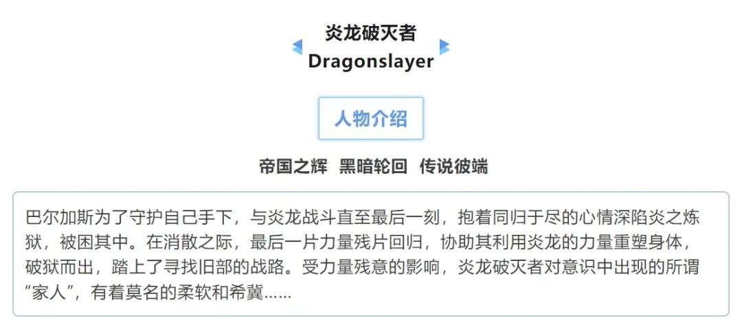 炎龙破灭者的阵营为帝国、黑暗、传说。其实这个不是很重要,因为他突进的时候会给自己喊2回合的超绝。