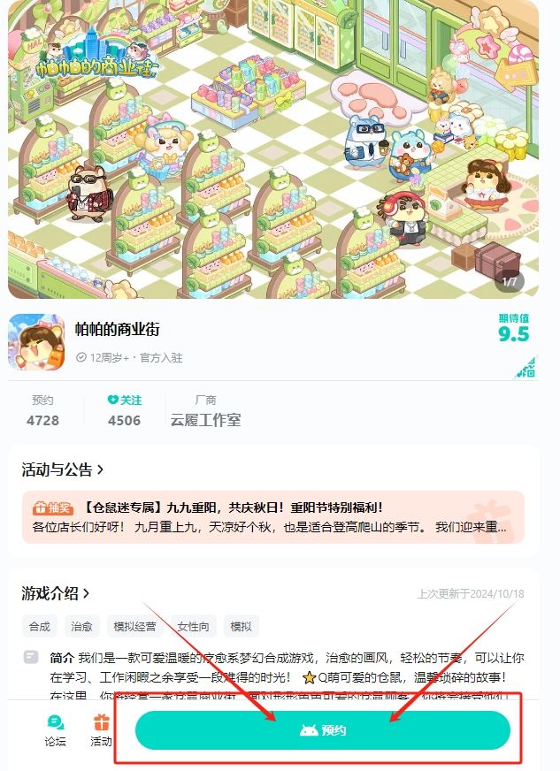 当然了,各位还没关注小仓仓以及预约游戏的店长记得给小仓仓点点关注,小仓仓会不定期在社区开展活动给各位店长带来福利~及时预约游戏以便在测试开始的第一时间收到消息哦。