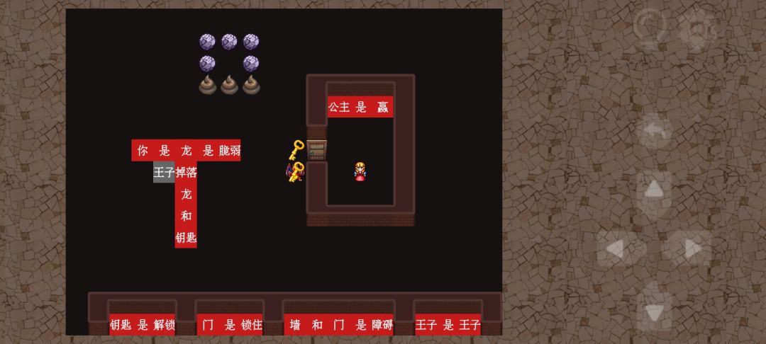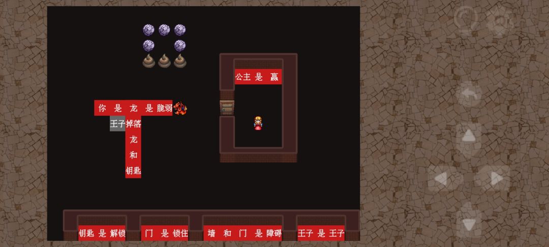 1、把文字组成图1所示位置,满足你既是王子又是龙还是脆弱,而且王子掉落龙,如此王子撞墙死后就会掉落龙