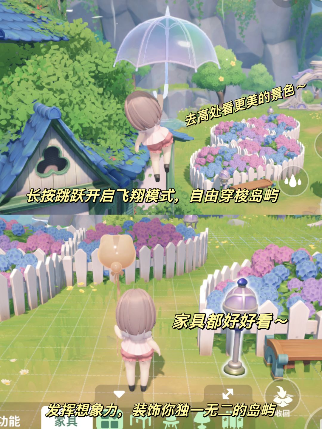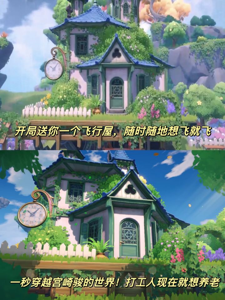 游戏中拥有多种飞行方式,比如可以驾驶飞屋在棉花糖般的云海中穿越,体验童话般的飞屋环游式探险;也可以撑着滑翔伞飞行,与好友一起从日出飞跃到黄昏;还能开着小飞机,穿梭于风格迥异的各个岛屿。