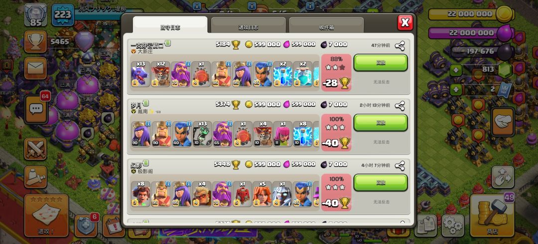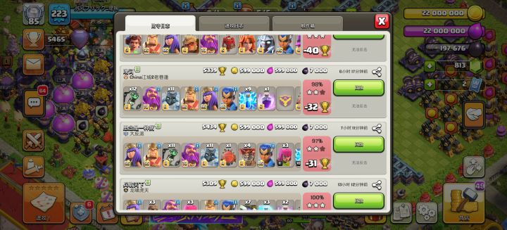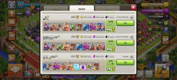 今日防守应该是漏一刀了,这个月定榜5400的机会很大,或许还能打个历史最高5700,估计是十五本不买杯的极限了,也是吃了那些玩熔岩气球的分,这个月用自制防空阵坑到了好几刀十六本。