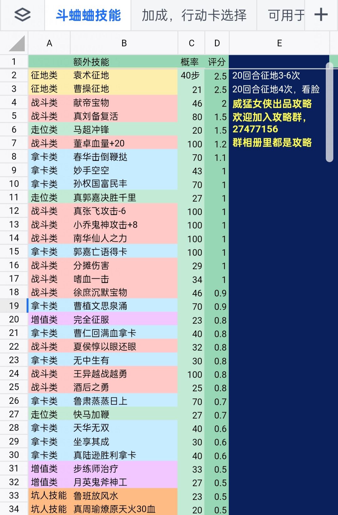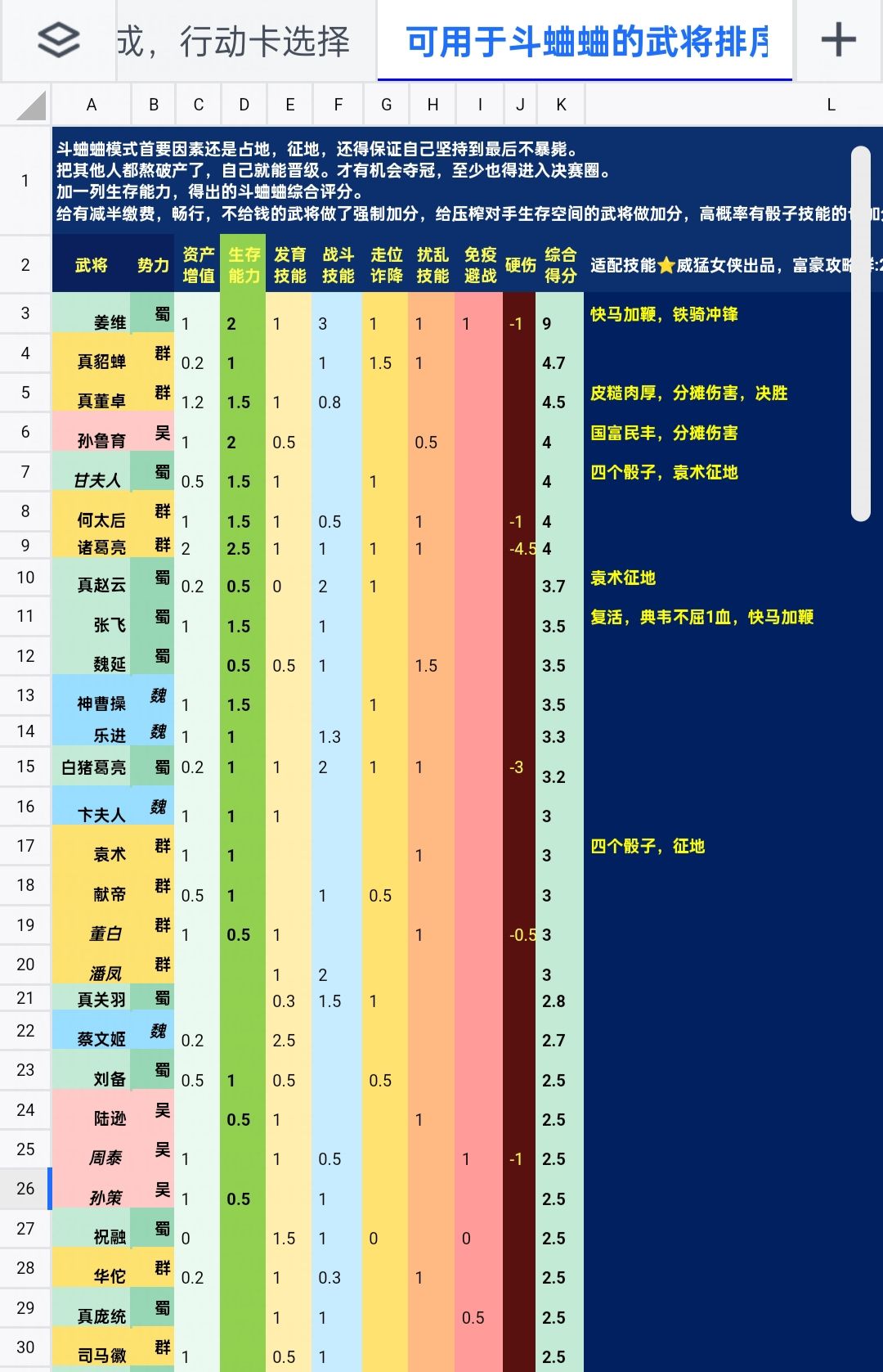 斗蛐蛐技能评分,加成行动卡选择,可用武将评分