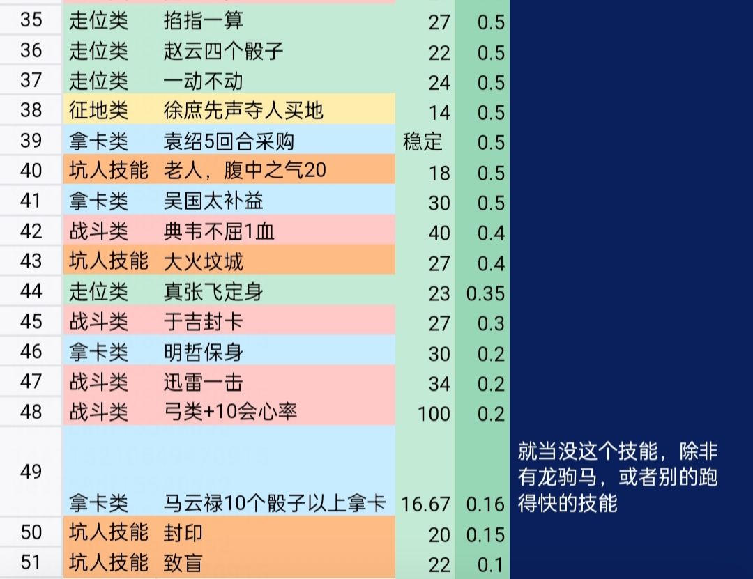 给有减半缴费,畅行,不给钱的武将做了强制加分,给压榨对手生存空间的武将做加分,高概率有骰子技能的也加分。