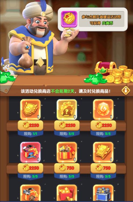 活动期间消耗【庆典币】,兑换金色信物、太阳符文等超级奖励!