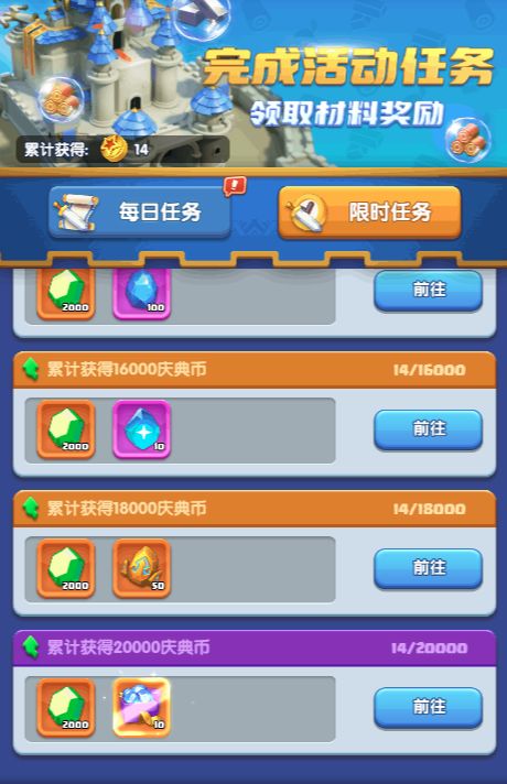 活动期间消耗【罗兰晶石】、【金丝楠木】参与城池建设,获得【庆典币】奖励。